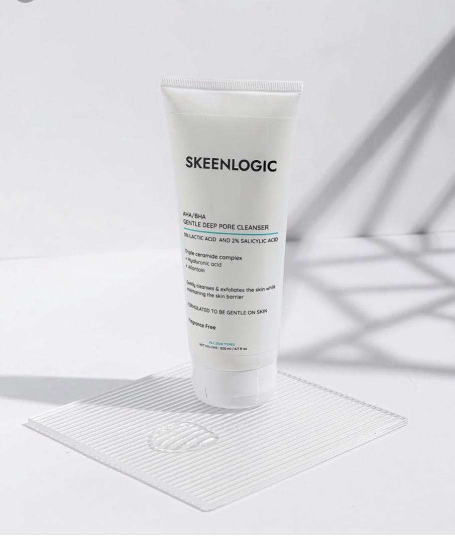Skeenlogic AHA/BHA Gentle Deep Pore Cleanser is an exfoliating facial wash formulated to gently remove dead skin cells, unclog pores, and refine skin texture.